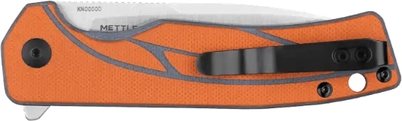 Kompaktný a spoľahlivý EDC nôž na každý deň. Oknife Mettle ponúka odolnú čepeľ z ocele 154CM so saténovou povrchovou úpravou, pohodlné otváranie flipperom alebo tlačidlom a bezpečné zaistenie Button Lock. Ergonomická rukoväť G10 v sivo‑oranžovej farbe s textúrou inšpirovanou listami skvele padne do ruky.