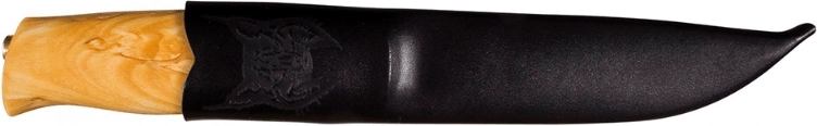 Rukoväť z jedného kusa kučeravej brezy je ručne brúsená, leštená a olejovaná – prirodzene padne do ruky, nešmýka sa a každý kus má jedinečnú kresbu dreva. Súčasťou je kožené puzdro na bezpečné a štýlové nosenie na opasku.