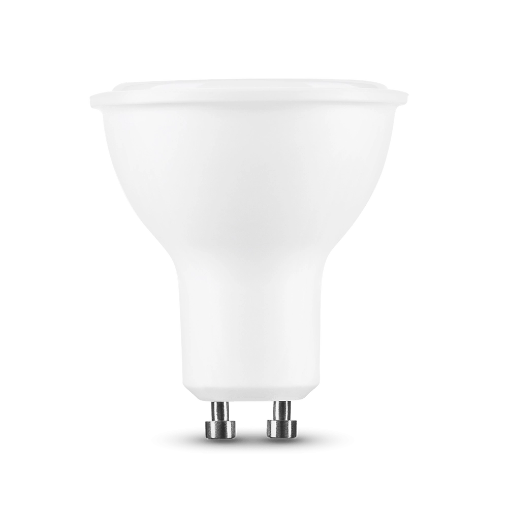 Konštrukcia s hliníkovým vnútrom efektívne odvádza teplo, zatiaľ čo plastový plášť znižuje hmotnosť a zvyšuje odolnosť. Žiarovka je vhodná pre vstavané bodové svietidlá do sadrokartónu aj pre nástenné a stolové svietidlá s päticou GU10.