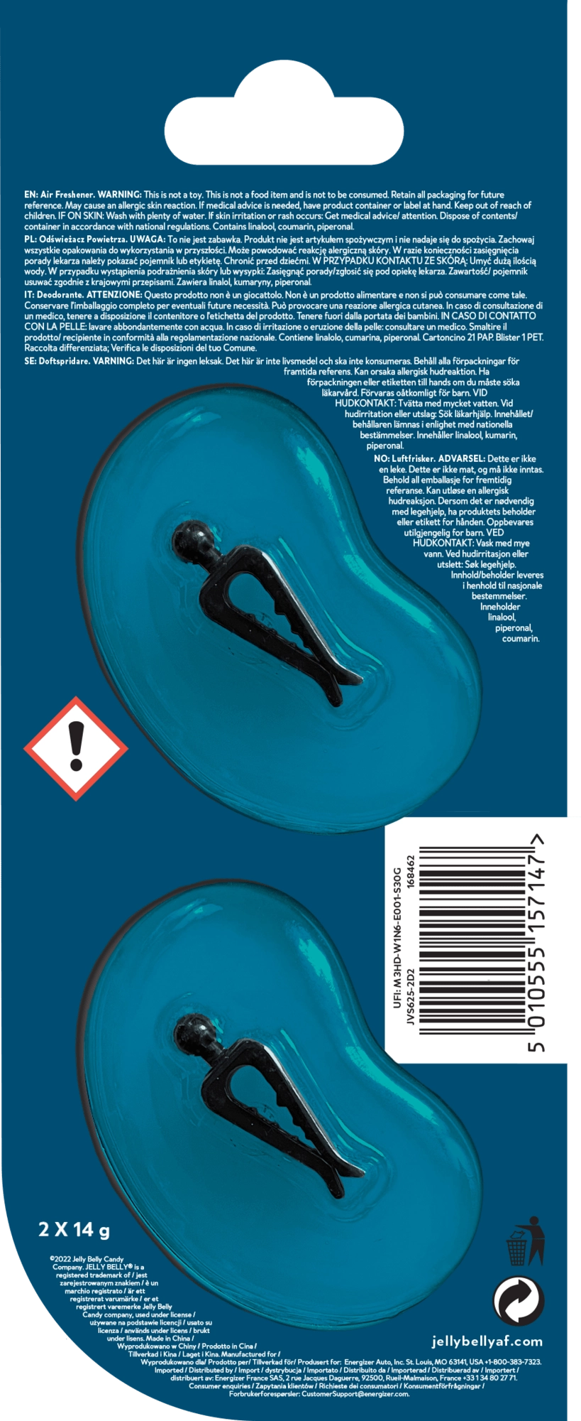 Voňavý doplnok do auta, domácnosti aj kancelárie: osviežovač vzduchu Jelly Belly VENT/CLIP-ON s vôňou čučoriedok prináša lahodne sladké aróma s jemnou kyslosťou až na 30 dní. Praktické uchytenie do ventilačnej mriežky a balenie DUO pre ešte intenzívnejšie prevoňanie.