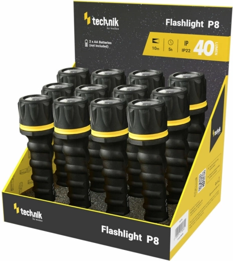 Kompaktná a odolná ručná baterka Technik MT-P8 je ideálna na každodenné používanie, prácu aj voľný čas. Ponúka svetelný tok 40 lm, dosvit 10 m a až 5 hodín prevádzky na 2× AA batérie (nie sú súčasťou balenia). Pogumované telo zvyšuje odolnosť proti pádu z 1 m a svietidlo spĺňa krytie IP20.