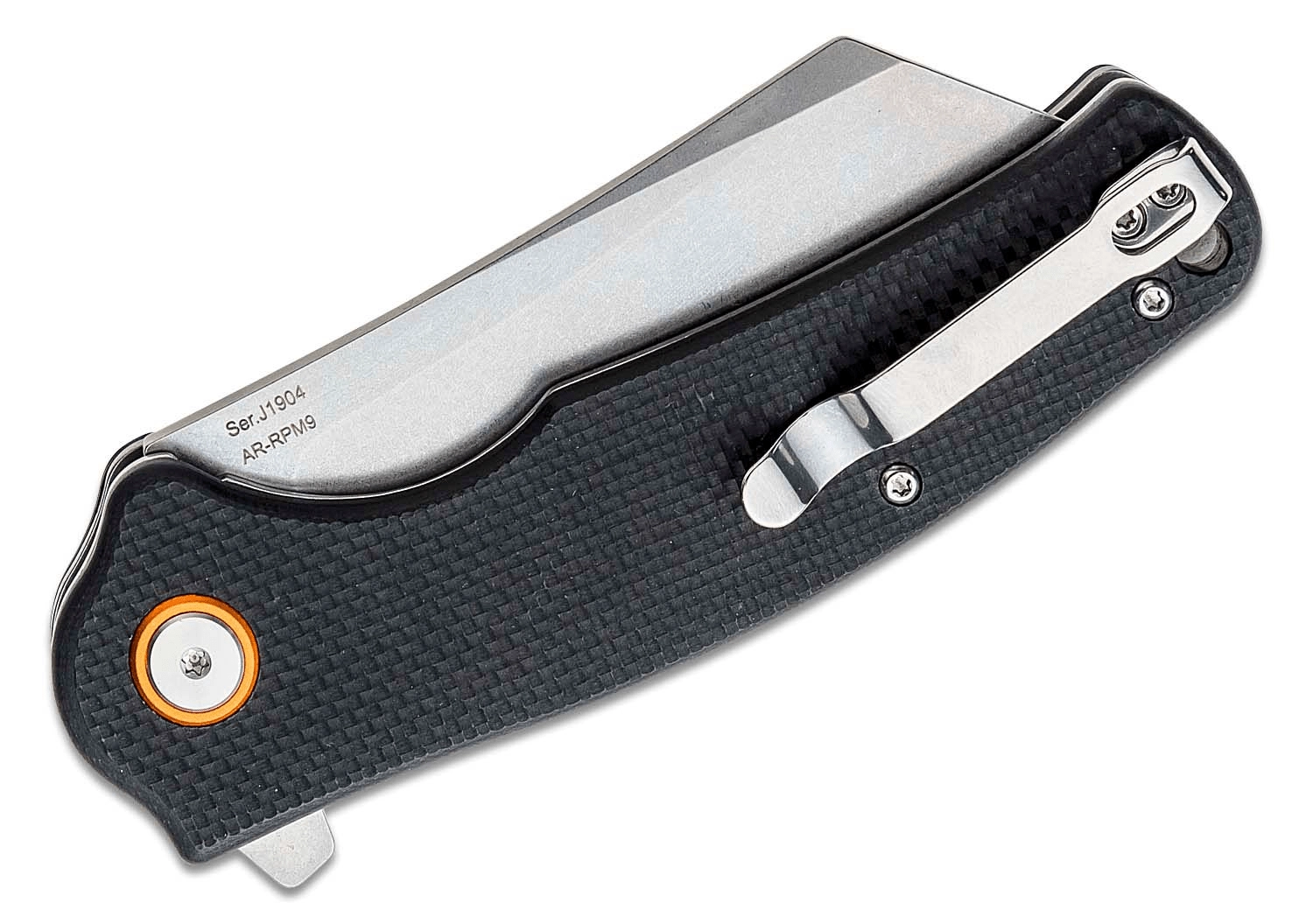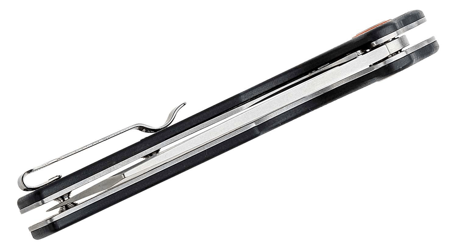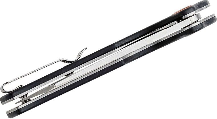 Otvorenie je svižné vďaka flipperu, o bezpečnosť sa stará liner lock. Textúrované čierne G10 skvele sedí v ruke aj v rukaviciach. Vreckový klip a otvor na šnúrku uľahčujú každodenné nosenie a rýchly prístup.