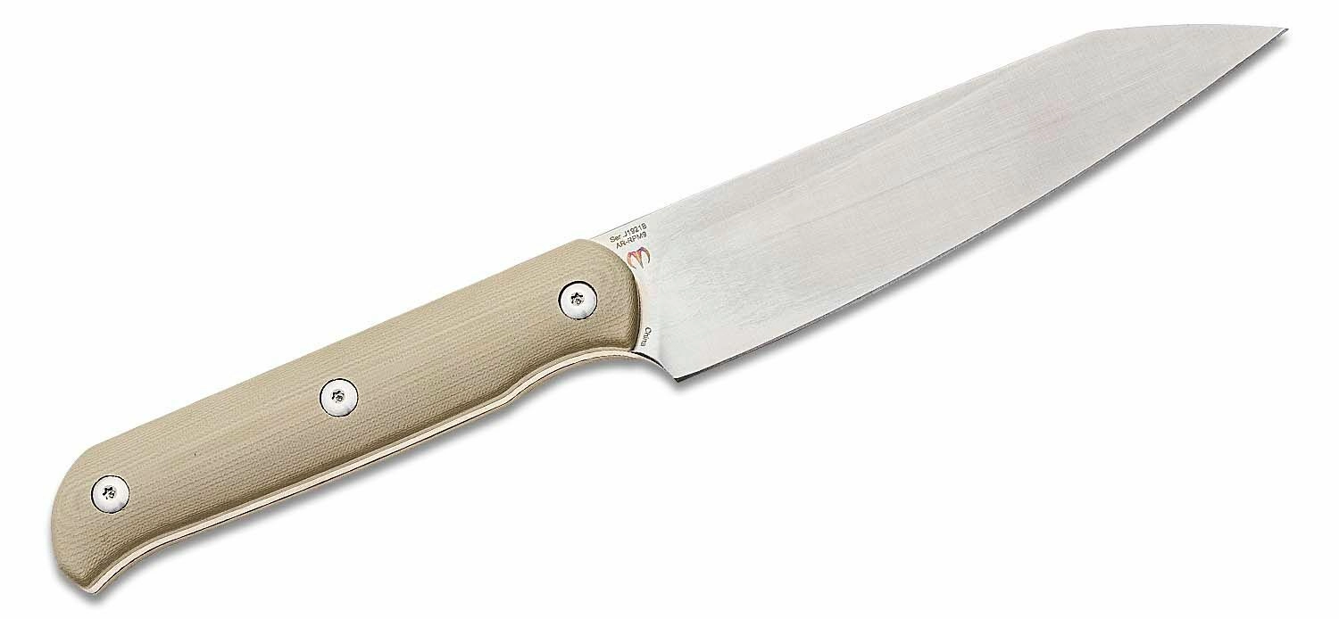 Rukoväť v pieskovohnedej farbe je z pevného materiálu G10 a je zaistená tromi nýtmi z nehrdzavejúcej ocele pre maximálnu stabilitu.