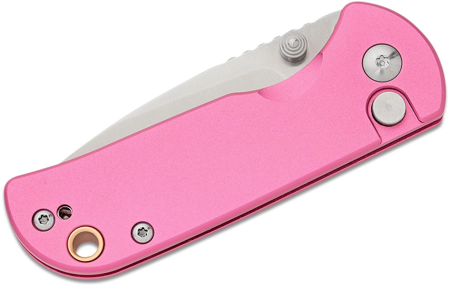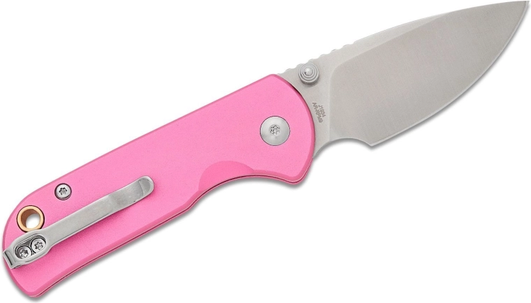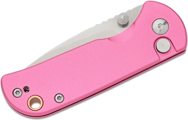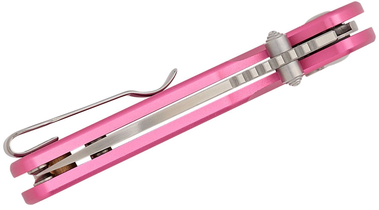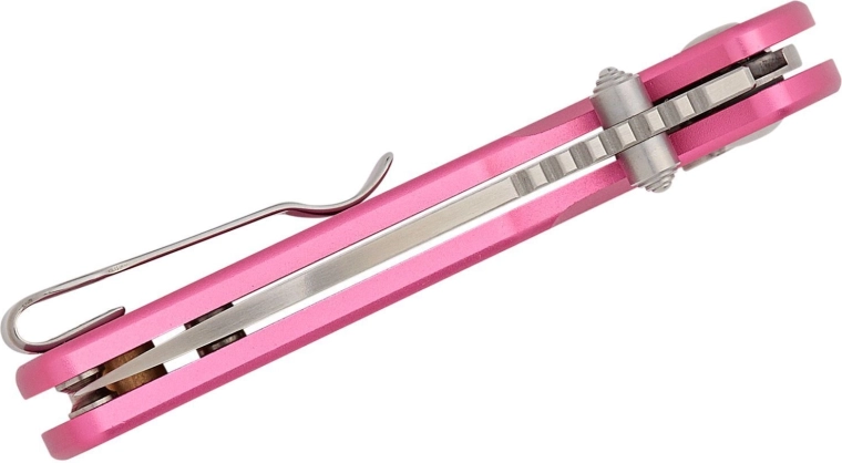 Keramické guľôčkové ložiská a obojstranný palcový kolík umožňujú rýchle, plynulé a jednou rukou vykonateľné otvorenie. Po otvorení čepeľ isti spoľahlivá poistka Button Lock. Ľahká hliníková rukoväť v ružovej farbe je odolná, dobre sa drží a vďaka klipu a otvoru pre šnúrku je nôž ideálny na EDC nosenie.
