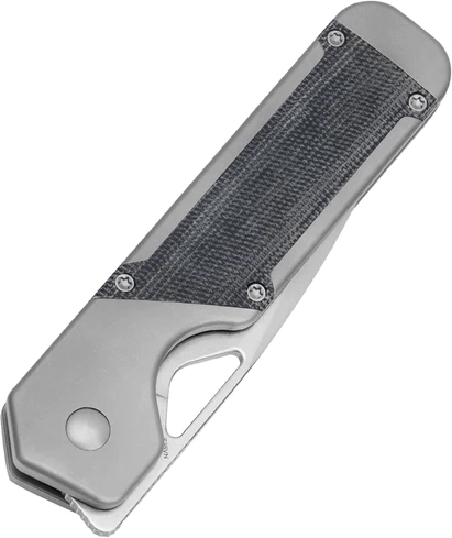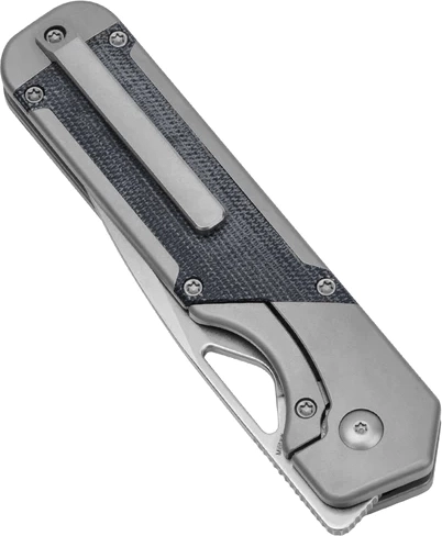 Otváranie je rýchle a bezpečné – možno použiť palcový otvor alebo predný vyklápač Front Flipper. Robustná poistka Framelock zaisťuje istotu pri práci. Ergonomická rukoväť je z kombinácie titánu a kompozitu Micarta, čo prináša nízku hmotnosť, príjemný úchop a dlhú životnosť. Praktický 3D titánový vreckový klip umožňuje diskrétne pravostranné nosenie.