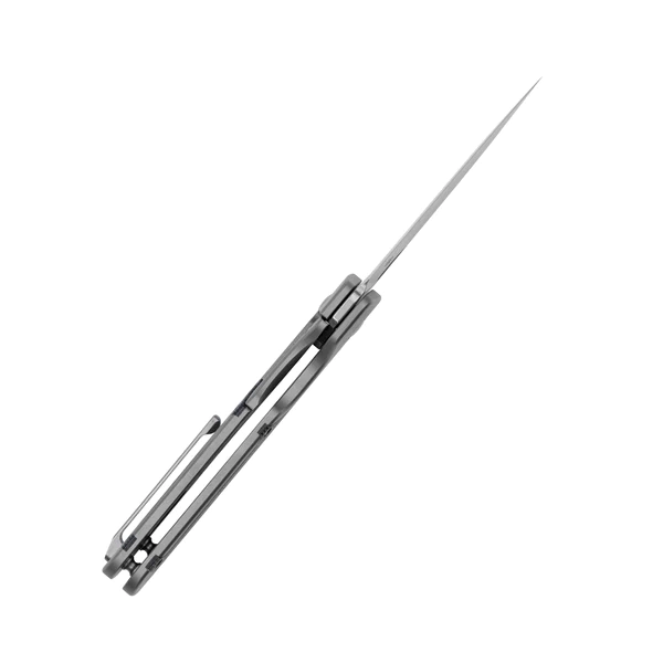 Elegantný zatvárací nôž s futuristickým dizajnom od Jonathana Militawa kombinuje prémiovú oceľ S35VN s povrchovou úpravou Stonewash, spoľahlivou poistkou Framelock a ľahkou rukoväťou z titánu a micarty. Otváranie je plynulé vďaka palcovému otvoru a front flipperu, nechýba 3D titánový klip pre pohodlné nosenie vpravo.