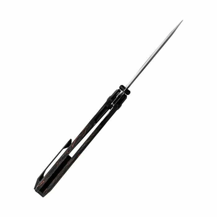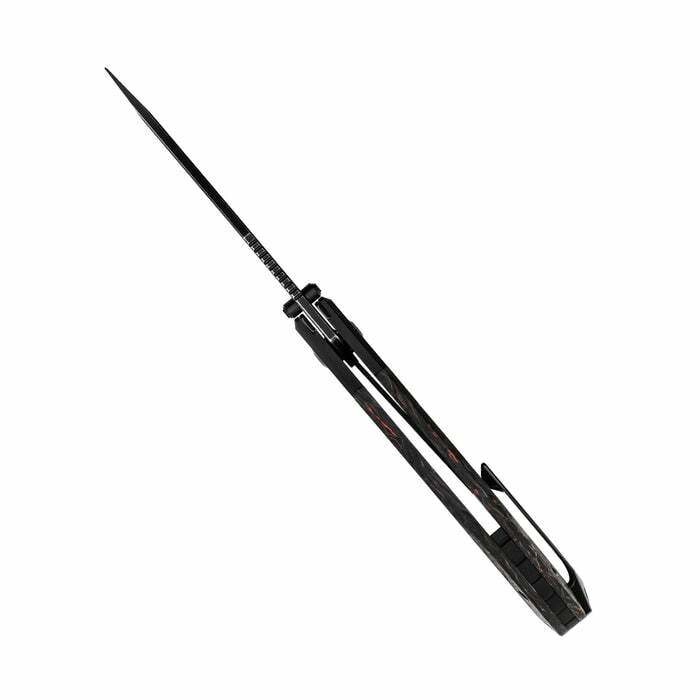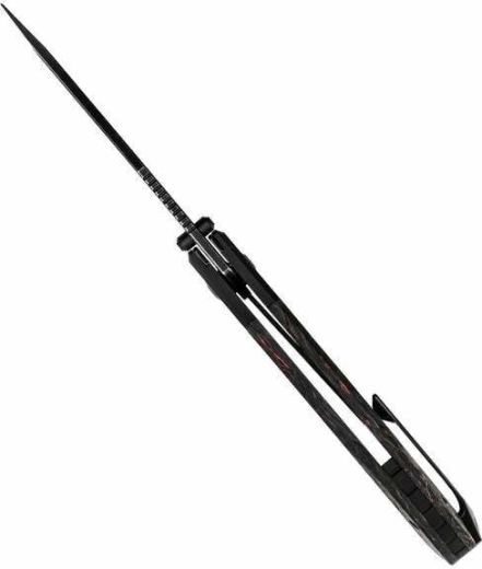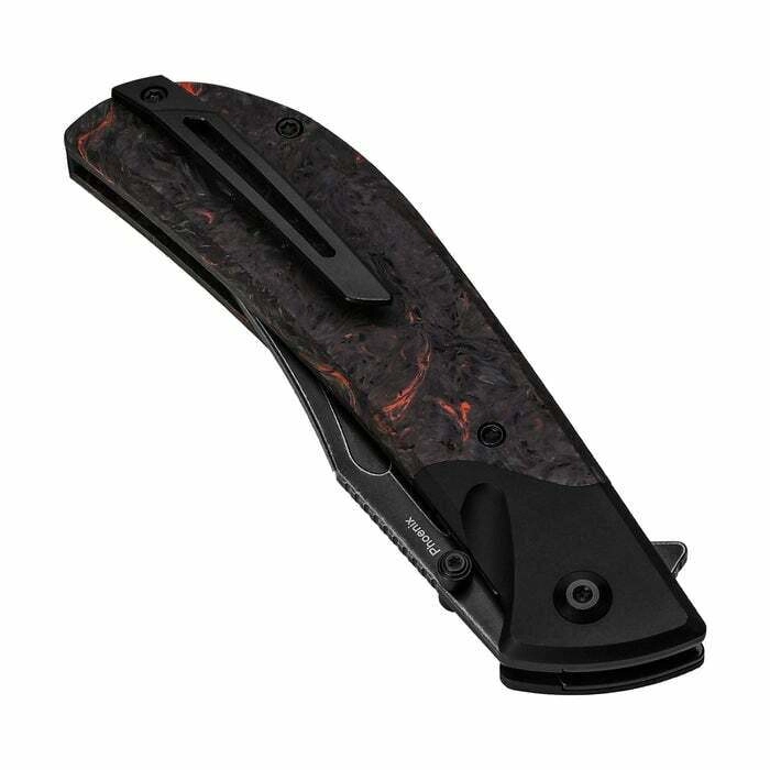 Otvorenie je bleskové a plynulé vďaka guľôčkovým ložiskám – zvoľte buď flipper, alebo palcový kolík. Poistka Liner Lock drží čepeľ isto pri práci. Rukoväť kombinuje prémiový FAT Carbon s výraznou kresbou a hliníkové prvky pre ideálny pomer pevnosti a hmotnosti, nechýba vreckový klip a otvor pre šnúrku.
