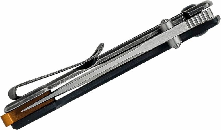 Textúrované G10 pre istý úchop a oceľová zadná střenka s úpravou Stonewash pre dlhú životnosť a elegantný vzhľad.