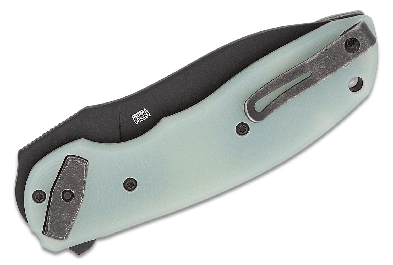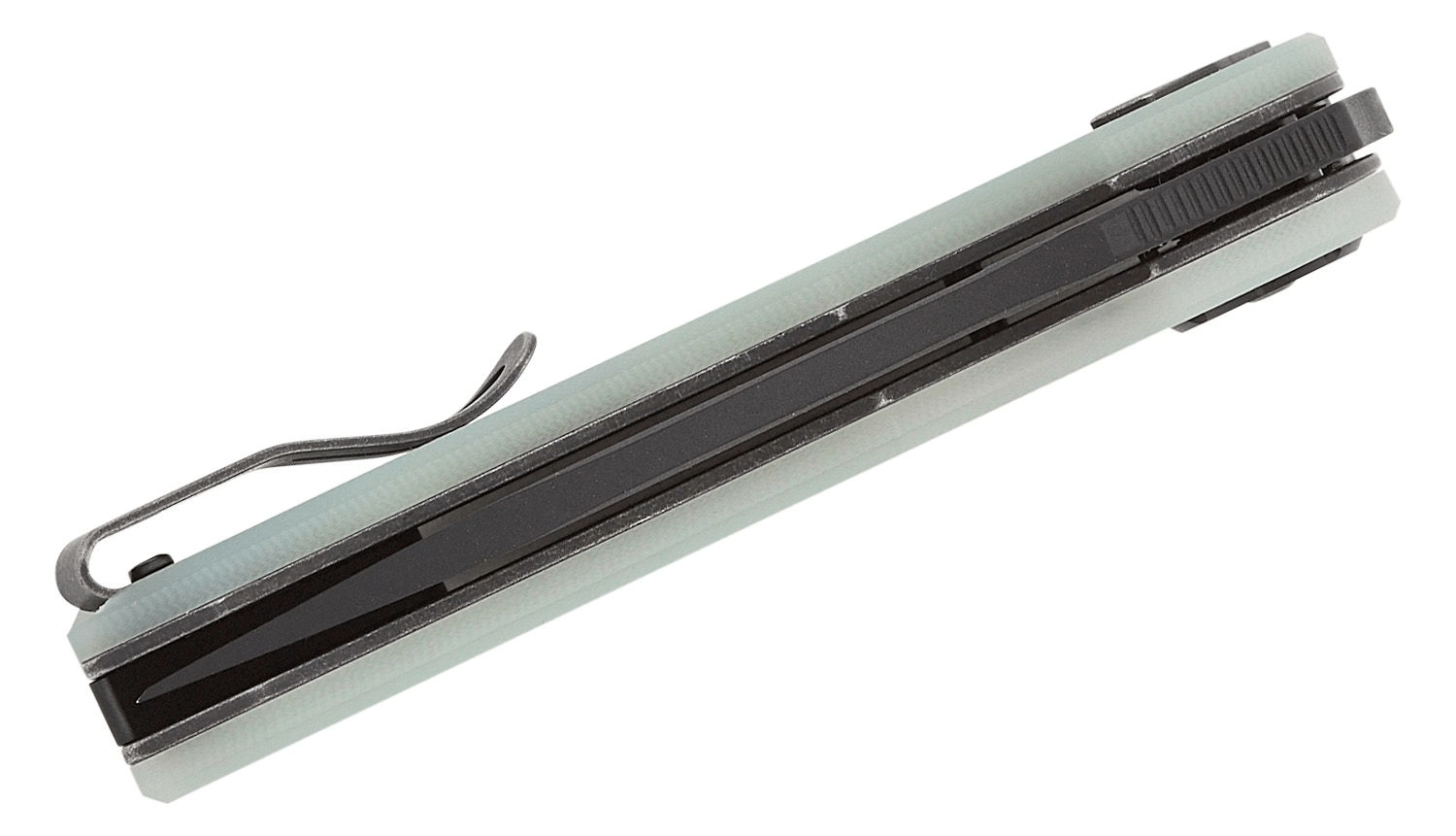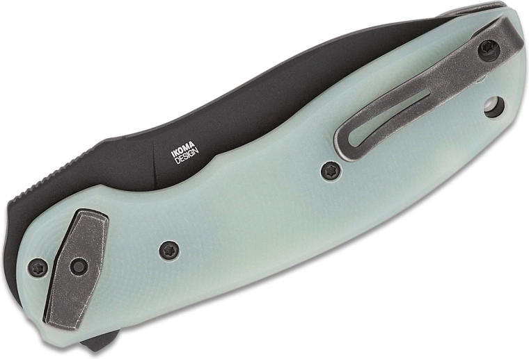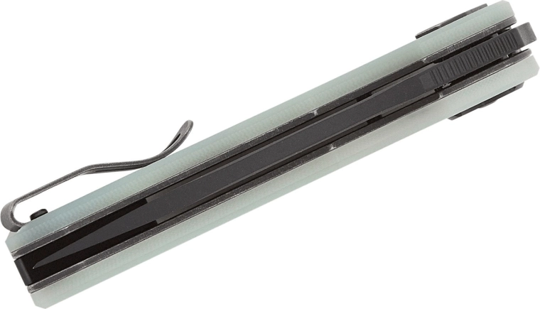 Rukoväť z odolného G10 v nefritovo zelenom odtieni ponúka bezpečný úchop aj v náročnejších podmienkach. Praktický vreckový klip na diskrétne každodenné nosenie a otvor na paracord dopĺňajú funkčnú výbavu.