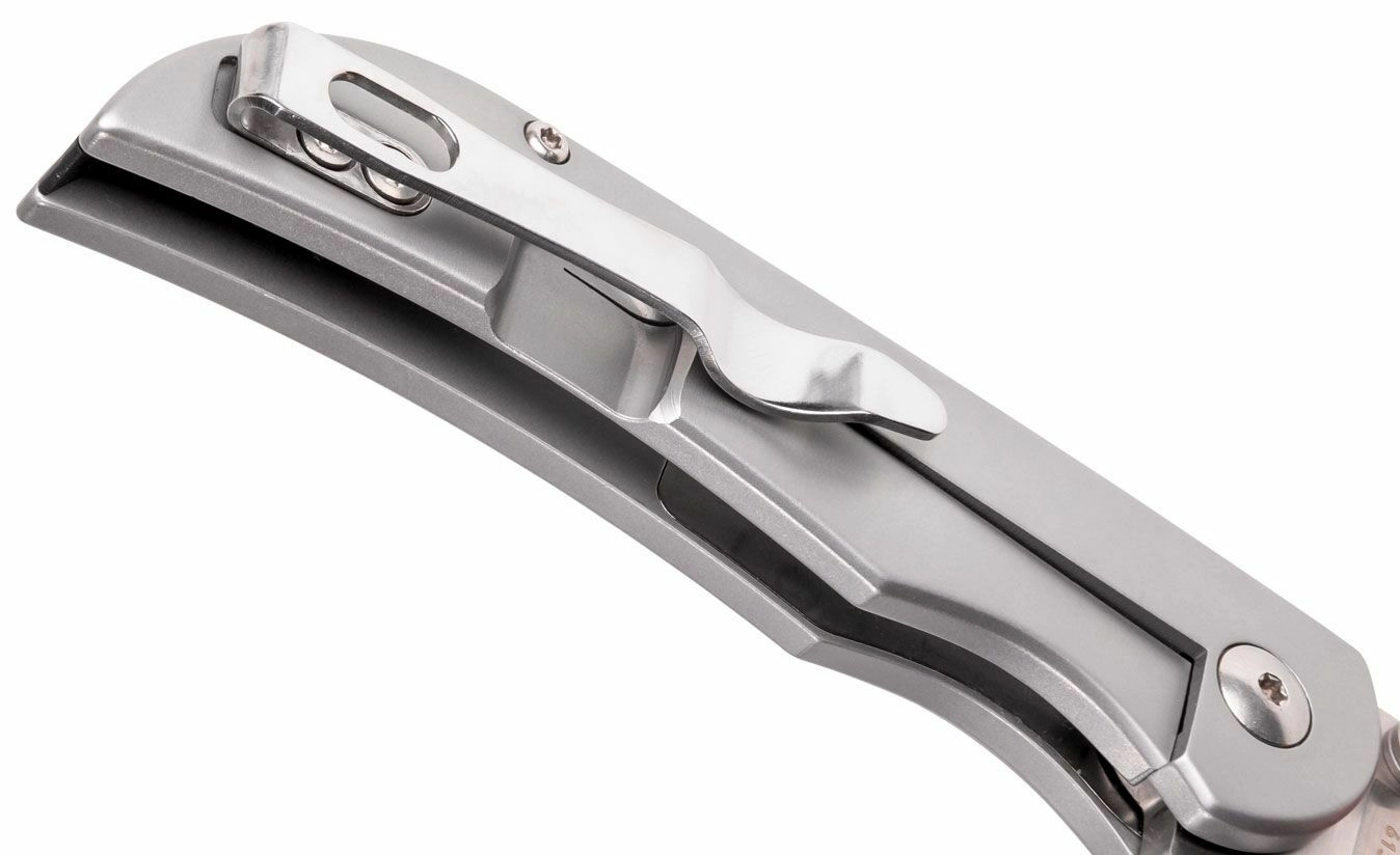 Robustný frame lock pevne aretuje čepeľ pri práci, zatiaľ čo hlboký vreckový klip umožňuje diskrétne a bezpečné nosenie.
