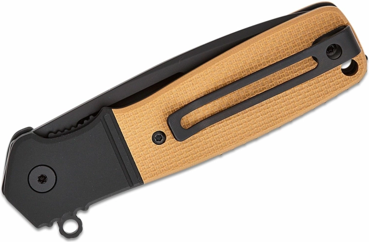 Otvorenie je rýchle a intuitívne pomocou flippera, spoľahlivé zaistenie zaručuje linerlock. Ergonomická rukoväť z čierneho hliníka s oranžovými vsadkami G10 poskytuje istý úchop aj v náročnejších podmienkach. Praktický vreckový klip a otvor na šnúrku uľahčujú každodenné nosenie.
