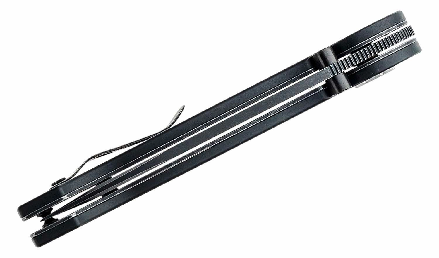 Čierno eloxovaný hliník s odľahčovacími otvormi znižuje hmotnosť bez kompromisov v pevnosti. Vreckový klip zabezpečuje pohodlné EDC nosenie.