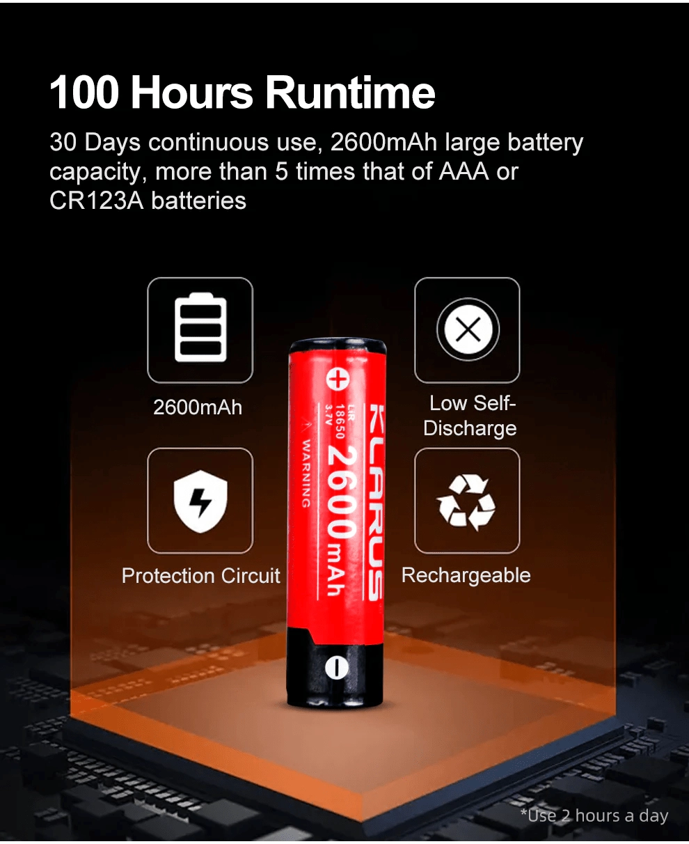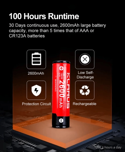 - Výdrž až 100 hodín s batériou 18650 2600 mAh (súčasť balenia)