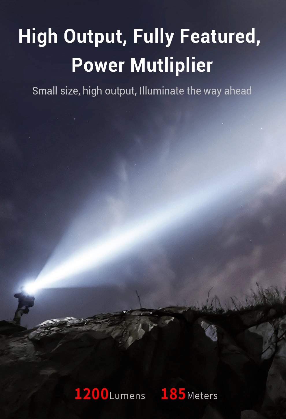 - Výkon 1200 lm a dosvit 185 m pre istotu viditeľnosti