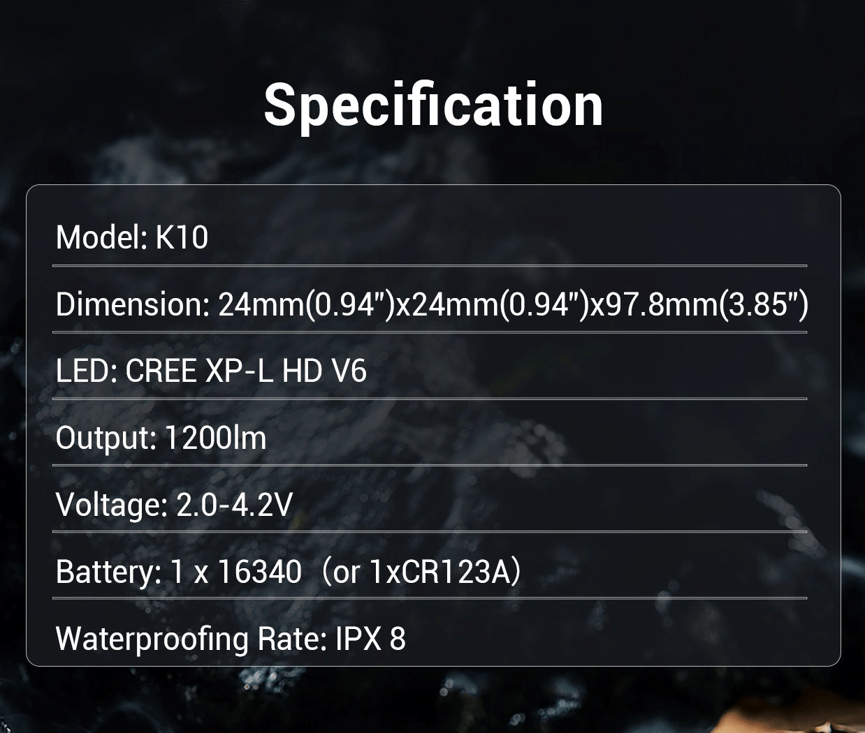 Klarus K10 v limitovanej edícii k 10. výročiu prináša výkonný a spoľahlivý zdroj svetla vo vreckovom prevedení. Vďaka LED CREE XP‑L HC V6 dosahuje svetelný tok až 1200 lúmenov a dosvit 185 metrov, čo z nej robí ideálnu voľbu na taktické využitie aj outdoorové aktivity.