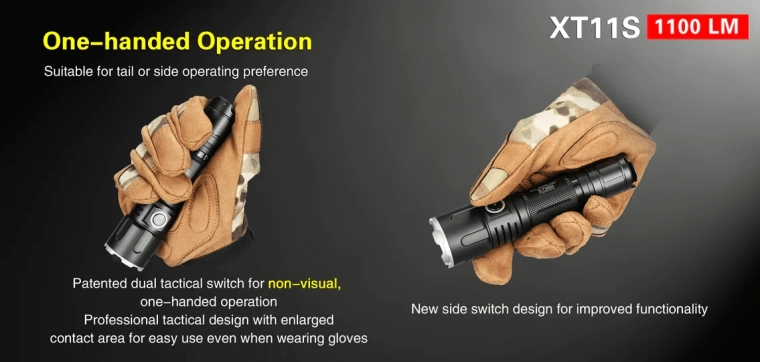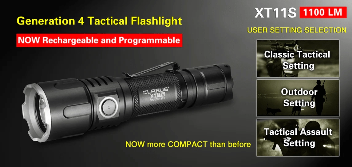 KLARUS XT11S je 4. generácia obľúbených taktických bateriek XT. Osadená diódou CREE XP‑L HI V3 poskytuje až 1100 lúmenov s lúčom do 330 metrov. Vďaka ergonómii a patentovanému trojitému spínaču (hlavný, režimový a bočný) zvládnete rýchle prepínanie režimov aj v rukaviciach a za každej situácie.