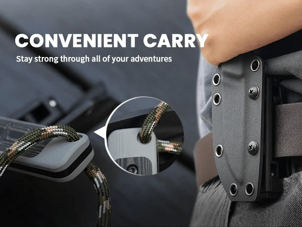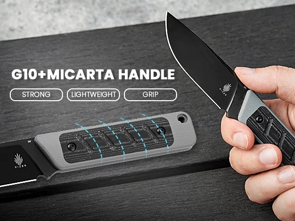 Rukoväť z G10 so záslehou z Micarty poskytuje istý, nešmykľavý úchop aj za mokra. Plná konštrukcia a otvor pre šnúrku zvyšujú bezpečnosť a kontrolu nad nožom. Súčasťou balenia je tvarované puzdro Kydex s možnosťou uchytenia na opasok, ktoré chráni čepeľ a uľahčuje každodenné nosenie.