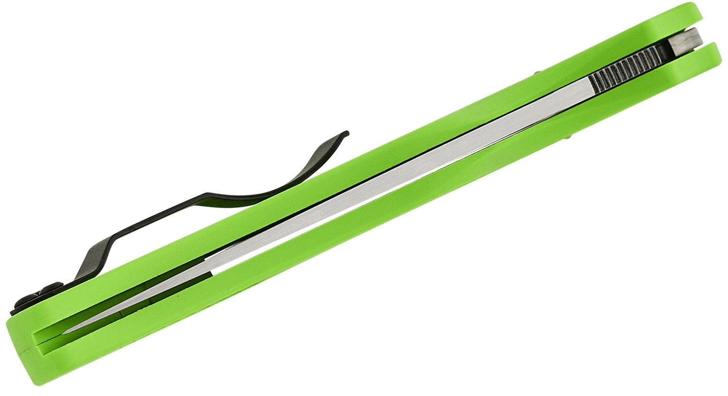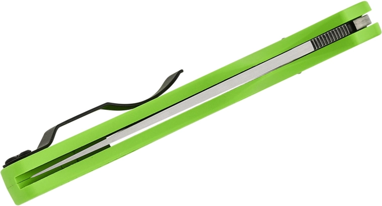 Rukoväť z vláknom vystuženého nylonu (FRN) v neónovo zelenej farbe poskytuje istý úchop aj vo vlhku a zároveň drží hmotnosť na minime. Poistka Back Lock zaisťuje bezpečné používanie a štvorsmerný reverzibilný vreckový klip umožňuje nosenie tip-up/tip-down, vľavo aj vpravo.