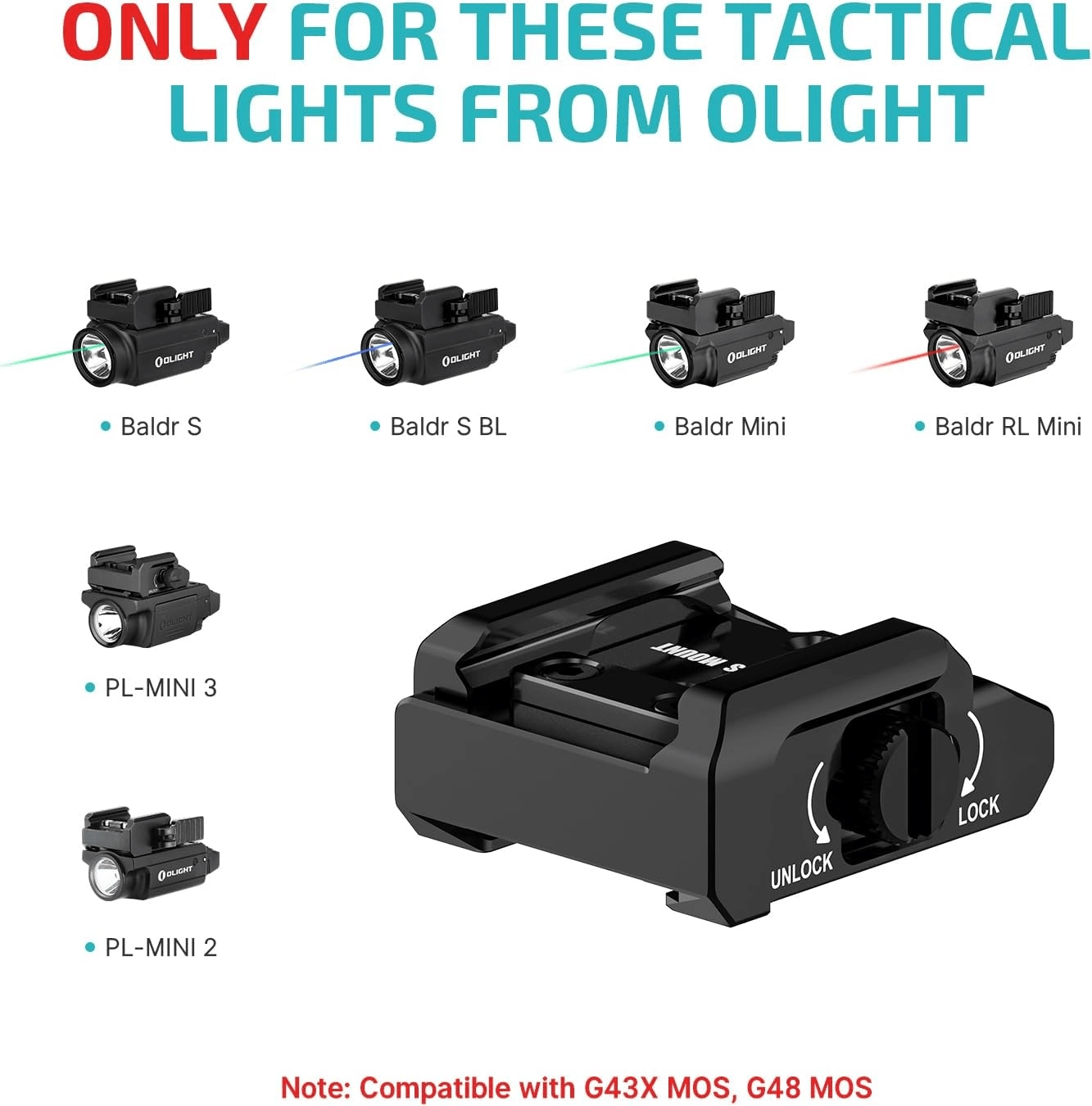 OLIGHT 43X MOS je montáž určená špeciálne pre krátke súpravy na GLOCK 43X MOS/48 MOS. Umožňuje pripevniť populárne taktické svetlá a vďaka plynulému posuvu na lište nastaviť ich ideálnu polohu pre rýchle a isté ovládanie.