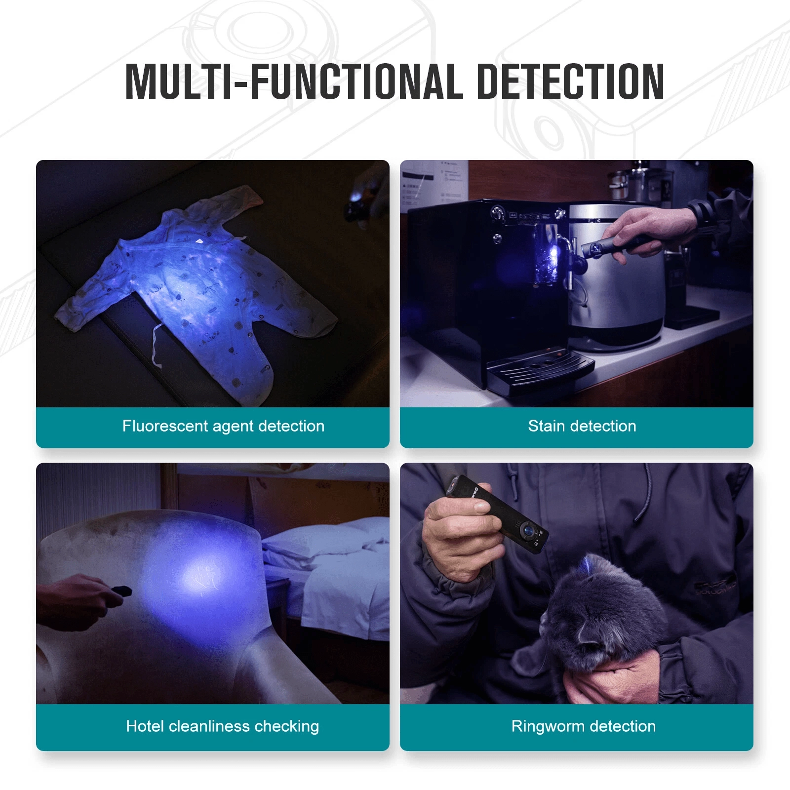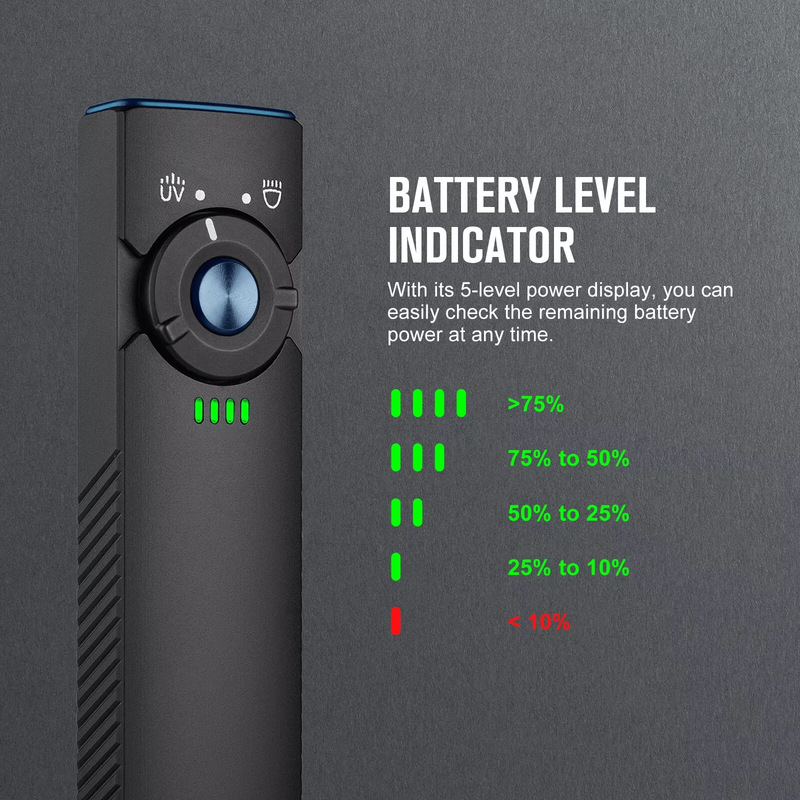 Prepínajte medzi neutrálne bielym svetlom s výkonom až 1 000 lm na každodenné svietenie a výkonným UV svetlom 365 nm (580 mW) na overovanie bankoviek, detekciu nečistôt či minerálov.
