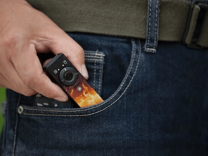 Centrálne tlačidlo s voličom režimov pre rýchlu voľbu bieleho/UV svetla. Magnetické USB nabíjanie MCC1A napája vstavanú 1050 mAh batériu.