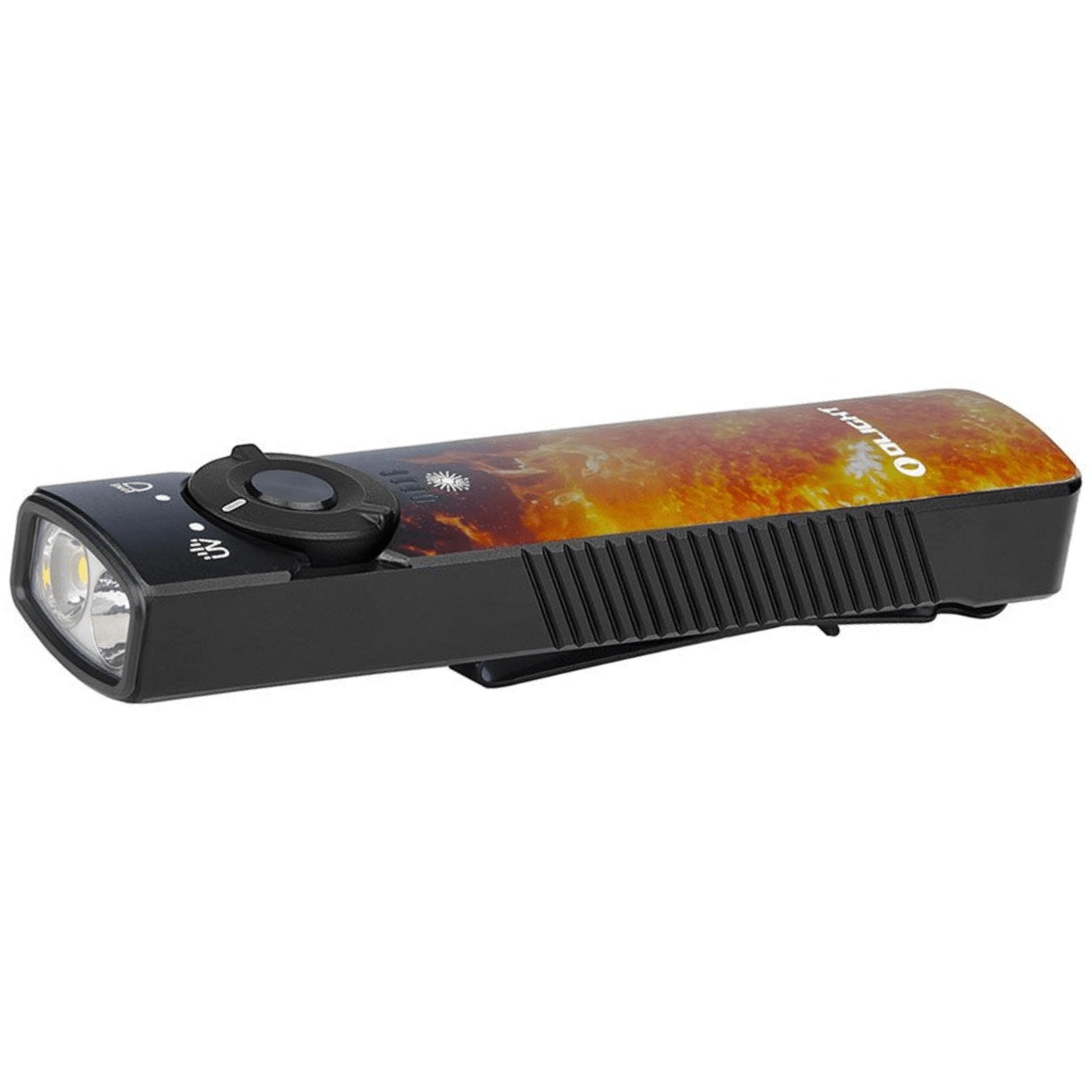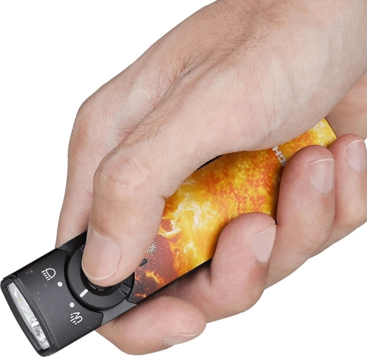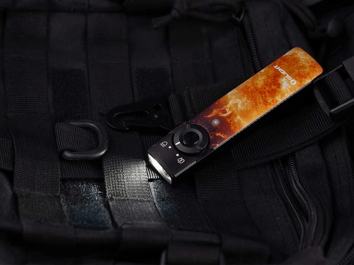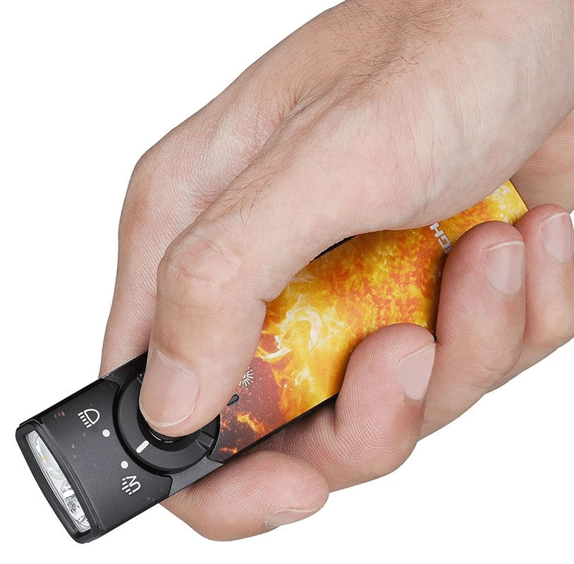 OLIGHT Arkfeld UV Sunburst Limited je EDC svietidlo, ktoré vyniká unikátnym plochým telom z hliníkovej zliatiny, skvelou ergonómiou a dvojicou svetelných zdrojov: bielou LED s 5 úrovňami jasu (až 1 000 lm) a UV diódou 365 nm (580 mW). Jednoduché ovládanie zabezpečuje centrálne tlačidlo s voličom režimov a prehľadné indikácie.