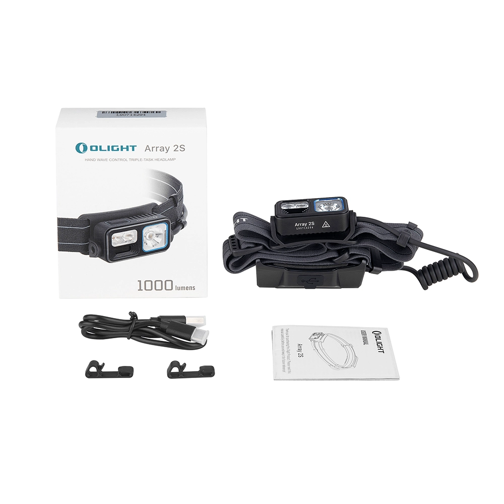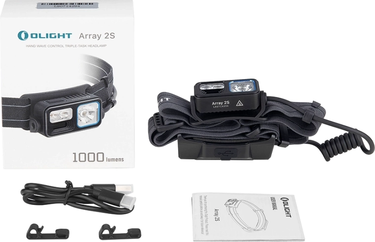 - Čelovka Array 2S (čelenka a batériový pack), USB‑C kábel, používateľský manuál