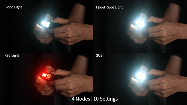 - 4 svetelné režimy: flood, flood + spot, červené svetlo, SOS
