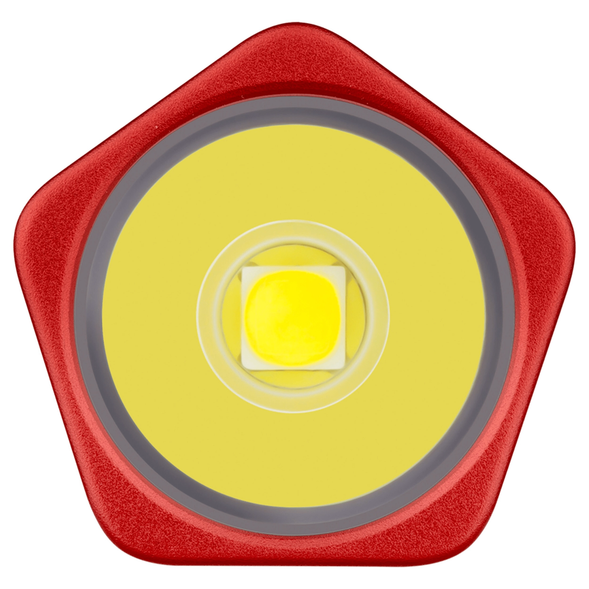 Intuitívne bočné tlačidlo ponúka 5 úrovní jasu + stroboskop a okolo neho umiestnený indikátor napájania (zelená/oranžová/červená) na rýchlu kontrolu energie. Konštrukcia z hliníkovej zliatiny, kompaktné rozmery a tvar päťuholníkového hranola zaisťujú istý úchop aj v rukaviciach.