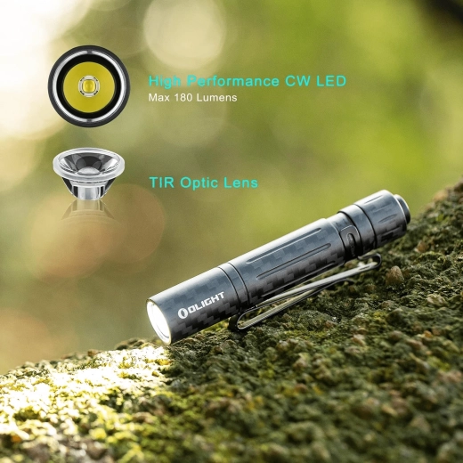 Ultralahké a kompaktné svietidlo OLIGHT i3T EOS z uhlíkových vlákien je ideálne na každodenné nosenie. Ponúka až 180 lm, dosvit 60 m, dve úrovne jasu (5/180 lm) a pohodlné ovládanie zadným spínačom. Vďaka vreckovému klipu ho ľahko pripevníte aj na šilt čiapky pre použitie bez rúk. Napájanie zabezpečuje bežná AAA batéria (súčasť balenia).