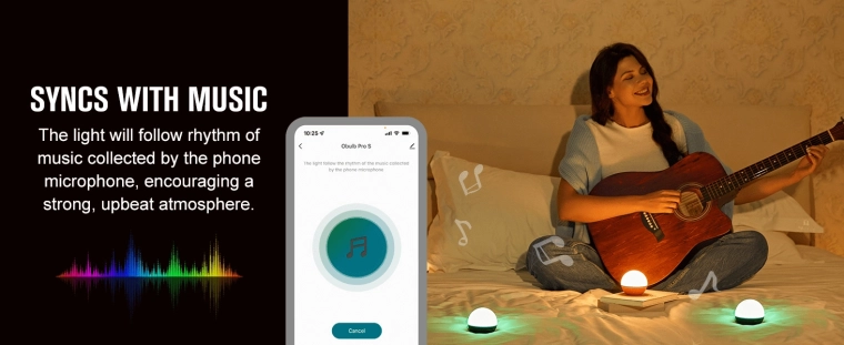 - Inteligentné funkcie v aplikácii: zmena jasu a farieb, skupinové ovládanie, hudobný rytmus, odpočítavanie.