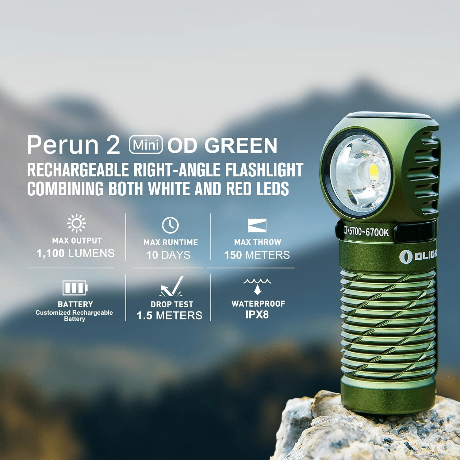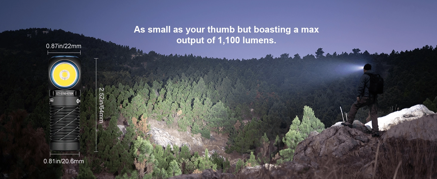 OLIGHT Perun 2 Mini je viacúčelová čelovka a vrecková baterka, ktorá zvládne každodenné nosenie, pobyt vonku aj prácu v dielni. Ponúka silné biele svetlo až 1100 lm s dosvitom 150 m a praktické červené svetlo na zachovanie nočného videnia či núdzovú signalizáciu. Vďaka pravouhlej hlave, magnetickej koncovke a pevnému klipu ju ľahko použijete na čelenke, na šilte čiapky, na popruhu batohu aj prichytenú na kovový povrch.