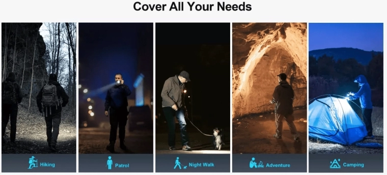 Vďaka akumulátoru 21700 5000 mAh vydrží svietiť až 15 dní v režime Moon. Nabíjanie je rýchle a pohodlné cez USB‑C port ukrytý pod prachovou krytkou, pričom je zachovaná vodotesnosť IPX8. Vylepšené kovové bočné tlačidlo a trojfarebný indikátor stavu batérie zaručujú spoľahlivé ovládanie v každej situácii.