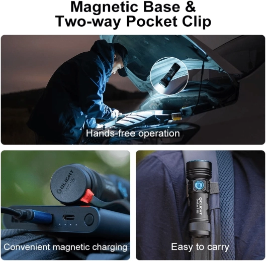 Magnetický nabíjací kábel sa prichytí na zadnú časť baterky a počas približne 1,5 hodiny dobije priložený akumulátor 18350 (3,6 V, 1100 mAh). Seeker 4 Mini ponúka päť úrovní jasu vrátane režimu Mesiac na diskrétne svietenie až 12 dní a stroboskop pre núdzové situácie. Krytie IPX8 a odolnosť voči pádu z 1,5 m zaisťujú spoľahlivosť v prírode aj pri práci.