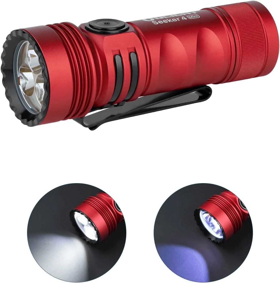 OLIGHT Seeker 4 Mini Red je výkonné vreckové svietidlo, ktoré v jednom tele spája biele svetlo (5700–6700 K) a UV 365 nm (760 mW). Ľahko tak odhalíte fluorescenčné látky, úniky kvapalín, nečistoty v hoteloch či dokladoch a zároveň získate silný biely kužeľ na turistiku, servis a každodenné použitie. Kompaktné rozmery sa zmestia do vrecka, batohu aj EDC organizéra.
