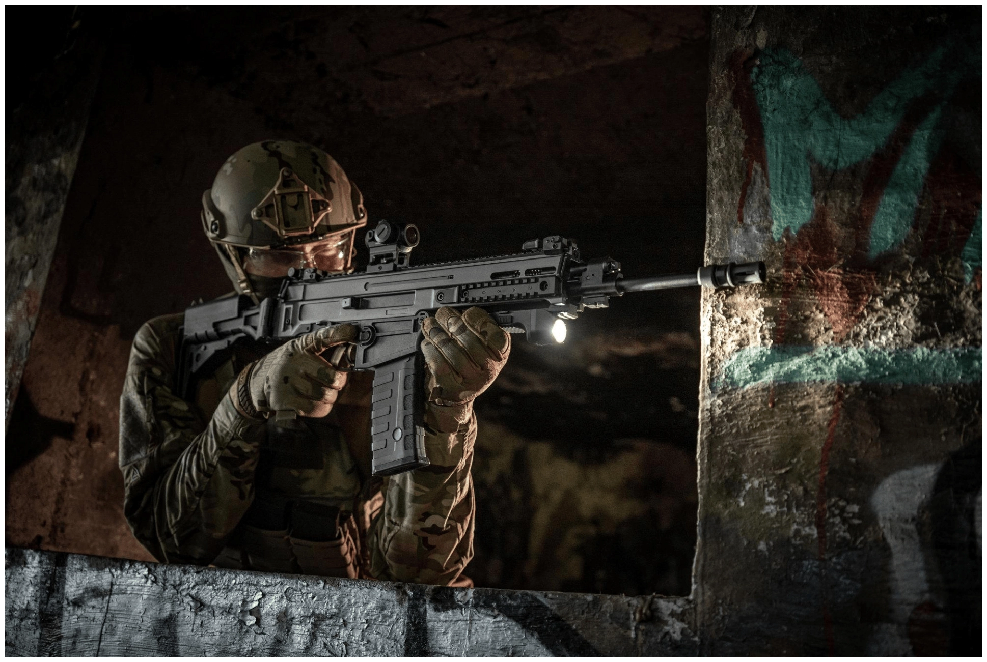 Dva svetelné režimy pokryjú blízke aj vzdialenejšie ciele. Široký kužeľ a vysoký svetelný výkon poskytujú prehľad a rýchlu identifikáciu v nízkom osvetlení.