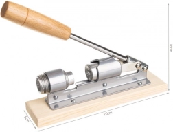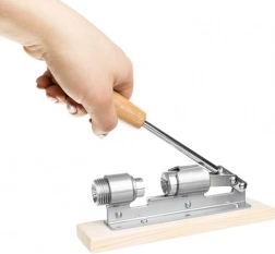 Stabilná drevená základňa drží nástroj pevne na pracovnej doske, takže lúskanie je rýchle, presné a bezpečné. Ovládanie zhora vyžaduje menej sily než klasické kliešťové luskáče a uľahčuje prácu aj pri dlhšom používaní.