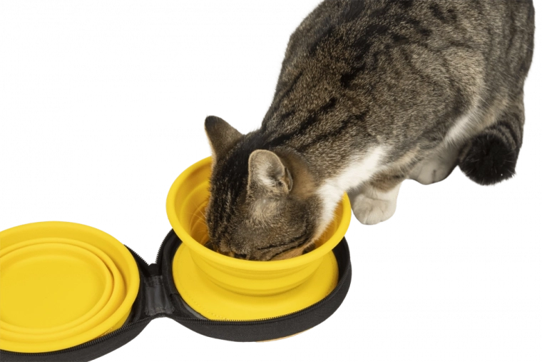 Praktická cestovná sada s dvoma skladacími miskami z kvalitného silikónu na krmivo aj vodu. Každá miska pojme až 350 ml, je ľahká, odolná a ľahko sa čistí. Misky sú uchytené na suchý zips v zipsovom puzdre, takže ich pohodlne vezmete na výlet, dovolenku aj túru so psom či mačkou.