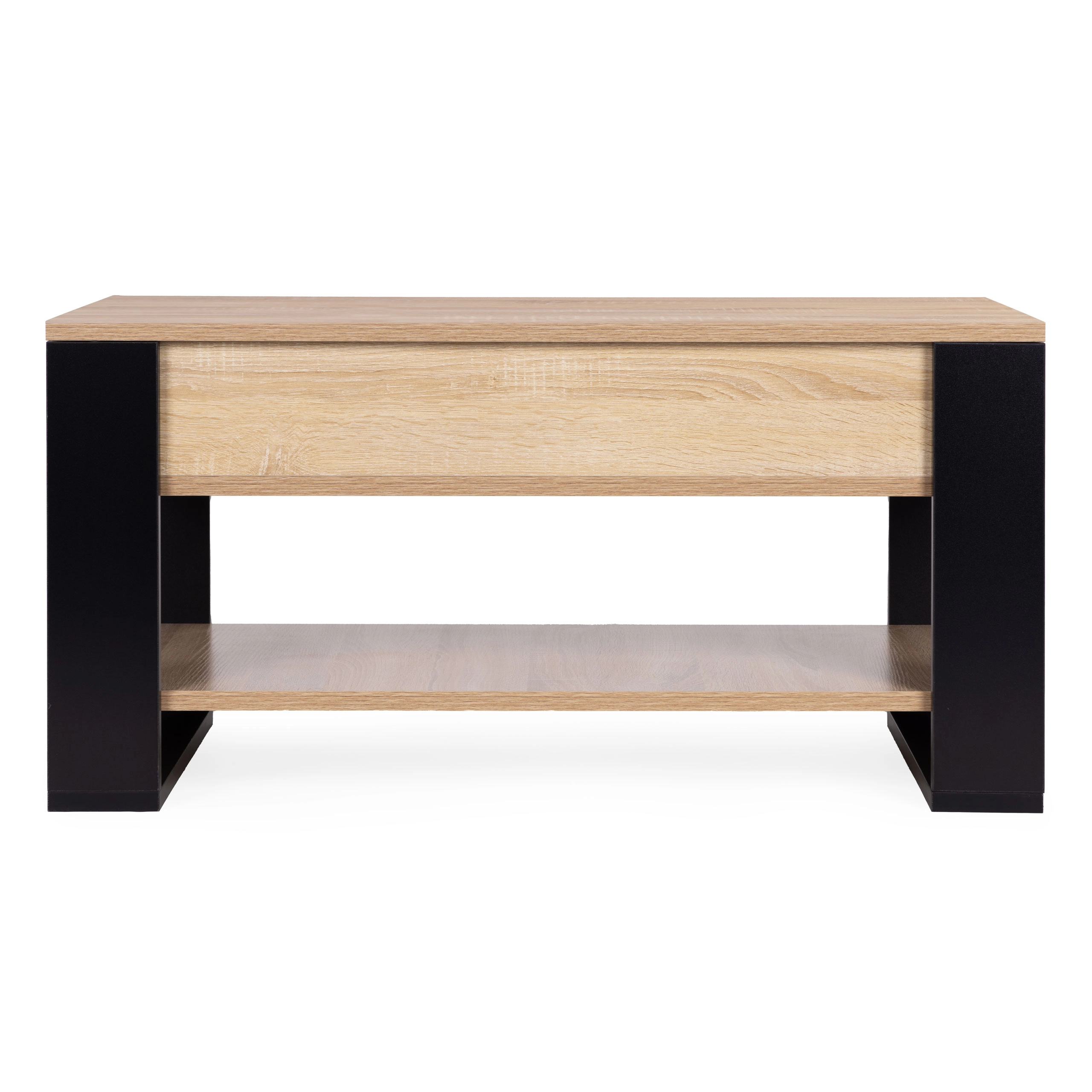 Elegantný stolík do obývačky kombinuje moderný vzhľad dreva a čiernych prvkov s vysokou praktickosťou. Vďaka výškovo nastaviteľnej výklopnej doske (45–59,5 cm) ho ľahko prispôsobíte výške sedačky – na prácu s notebookom, podávanie občerstvenia aj pohodové chvíle pri filme.