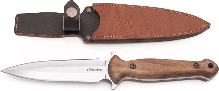 Robustný taktický nôž TLK2 od Beavercraft je spoľahlivý nástroj na outdoor, turistiku aj každodenné používanie. Ponúka čepeľ spear point z nehrdzavejúcej ocele X50CrMoV15 s výbornou odolnosťou proti korózii, full‑tang konštrukciu pre maximálnu pevnosť a ergonomickú orechovú rukoväť s pevným úchopom. Súčasťou je kožené puzdro na opasok pre bezpečné a pohodlné nosenie.