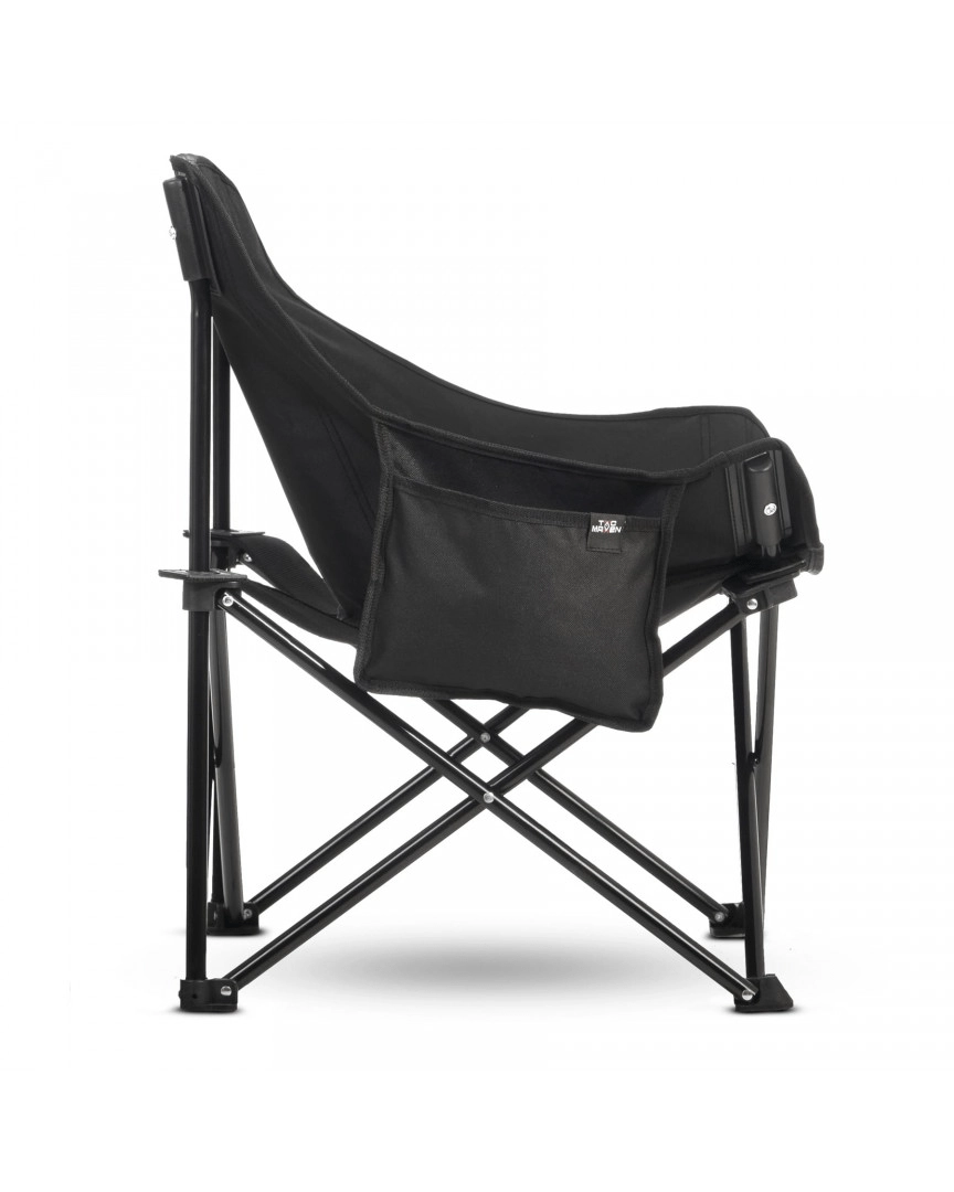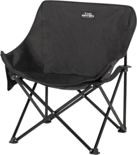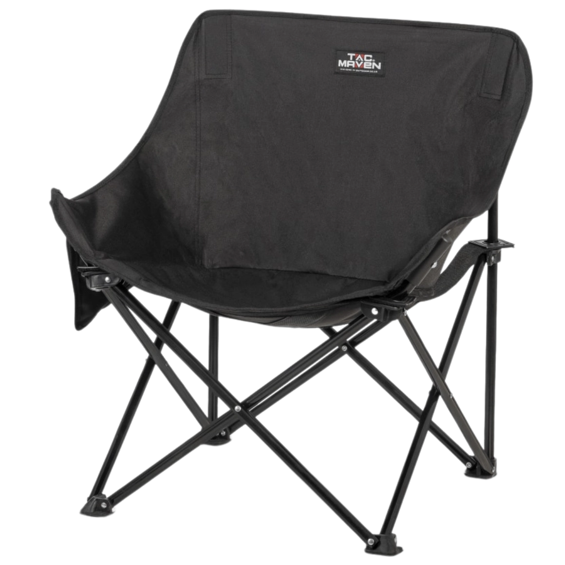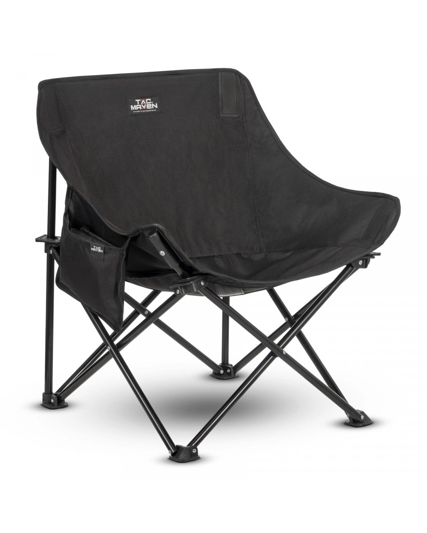 Odolná a pohodlná skladacia kempingová stolička TAC MAVEN Pentagon v čiernej farbe ponúka robustný oceľový rám, odolnú tkaninu 600D Oxford s PVC povrchom a nosnosť až 150 kg. Vďaka polstrovanému sedáku, 10-stupňovému naklopeniu operadla a protišmykovým nohám je ideálna na kempovanie, k vode, na pláž aj strelnicu.
