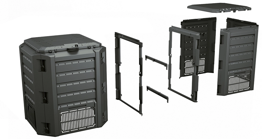 - Praktické otvory – pohodlné vkladanie materiálu a odoberanie hotového kompostu.