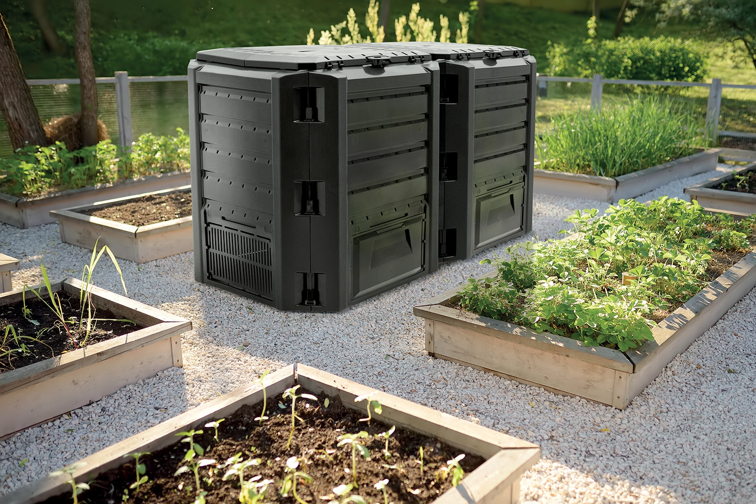 Zaobstarajte si priestranný kompostér, ktorý urýchli premenu trávnej hmoty, lístia a kuchynských zvyškov na kvalitný humus. Model Module Compogreen s kapacitou 800 l ponúka stabilnú konštrukciu, dobré prúdenie vzduchu a elegantné čierne prevedenie vhodné do každej záhrady.