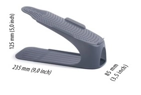 Vďaka odolnému plastu je organizér pevný, ľahký a ľahko umývateľný. Protišmykové prvky zvyšujú stabilitu pri ukladaní obuvi ako sú sandále, tenisky, mokasíny či papuče. Flexibilný tvar bez problémov pojme topánky s maximálnou výškou 12 cm a je ideálny pre veľkosti 30–38, čo pokrýva detskú aj menšiu dámsku obuv.