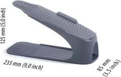 Organizér na topánky v elegantnej antracitovej farbe je chytré riešenie do botníka aj šatníkovej skrine. Vďaka umiestneniu topánok nad seba získate prehľad a zároveň ušetríte až 50 % priestoru. Protišmykový povrch udrží obuv bezpečne na mieste a flexibilná konštrukcia je vhodná aj pre vyššie modely do 12 cm.