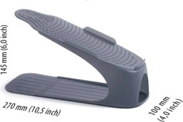 Urobte poriadok v botníku a získajte viac priestoru vďaka organizéru Prosperplast Spacyshoe. Odolný plast v elegantnej antracitovej farbe sa ľahko udržiava a vďaka premyslenej konštrukcii ušetríte až polovicu miesta na policiach. Každý kus pojme obuv do výšky 12 cm a spoľahlivo drží vďaka protišmykovým prvkom.