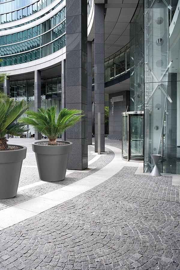 Nadčasová antracitová farba a kónický tvar sa ľahko kombinuje s modernou architektúrou aj prírodnými prvkami v interiéri aj na terase.