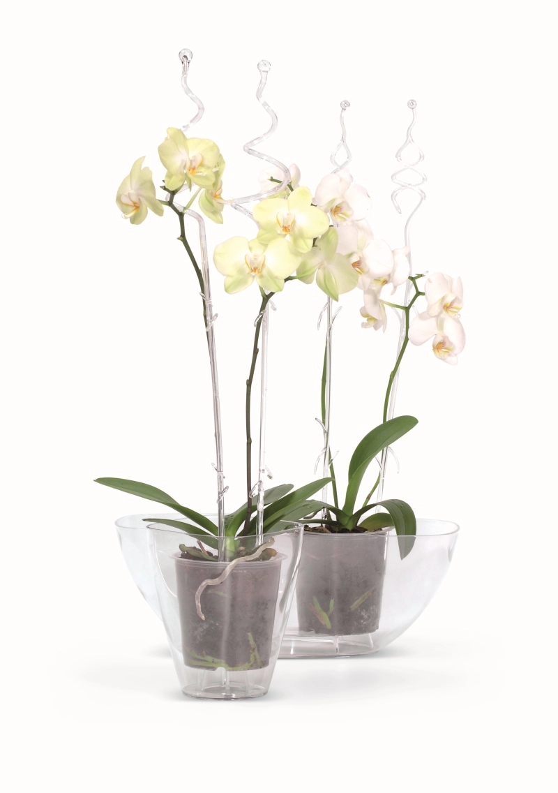 Jemné krivky a bočné očká elegantne vedú stonky a dodávajú orchideám štýl bez kompromisu na stabilite.