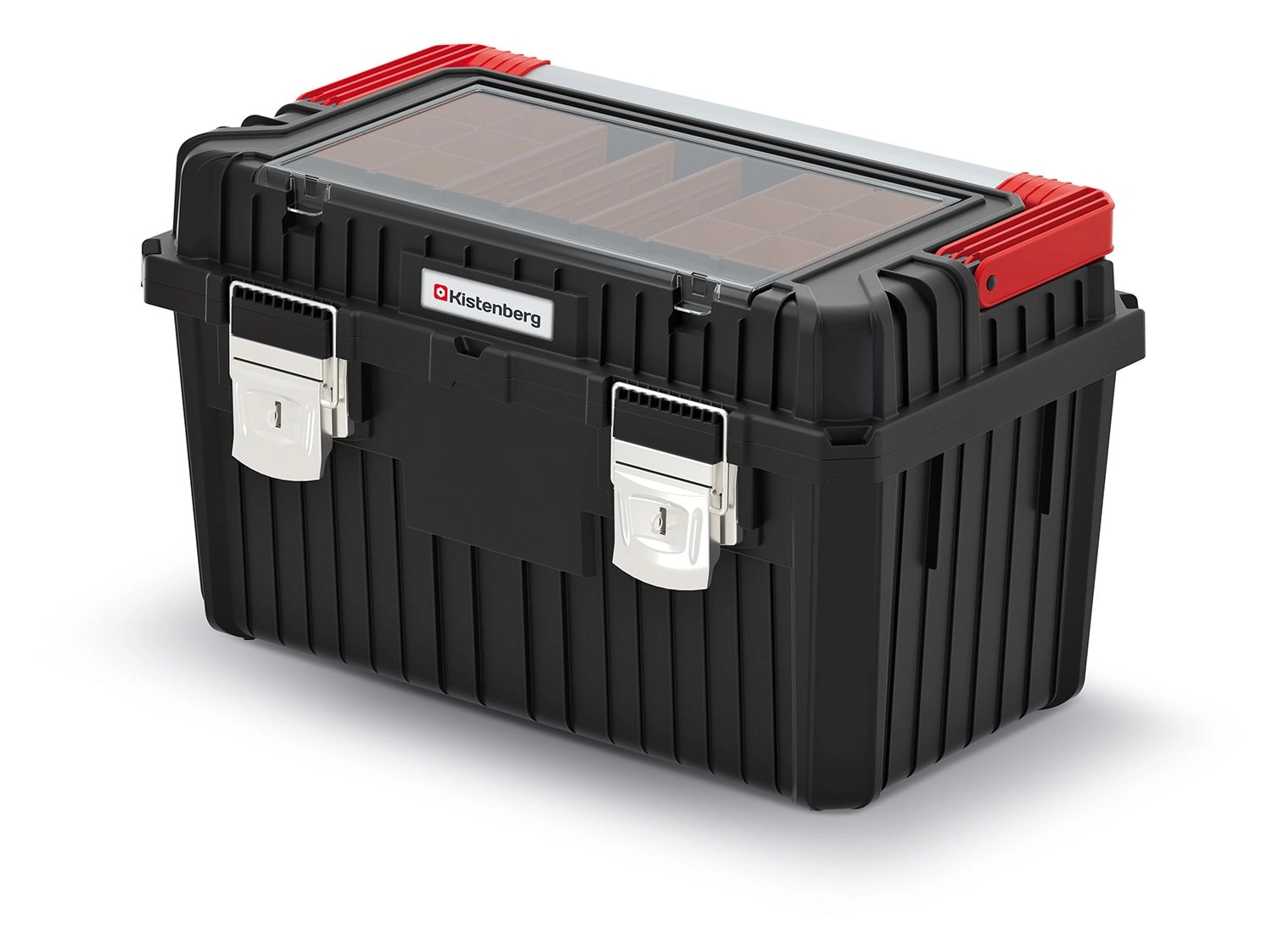 Robustný kufor na náradie Heavy v čiernej farbe je navrhnutý na každodenné používanie v dielni aj na montážach. Kovové prvky zabezpečujú dlhú životnosť a istotu pri prenášaní, priesvitné veko horného organizéra (podľa variantu) zas rýchly prehľad o uložených drobnostiach.