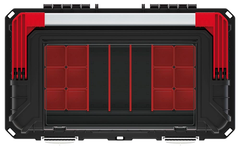Vďaka premyslenému vnútornému usporiadaniu, vyberateľnej vložke a vonkajšiemu priečinku si ľahko roztriedite náradie aj spotrebný materiál. Pevné západky držia veko spoľahlivo uzavreté, takže obsah zostane v bezpečí aj pri preprave.